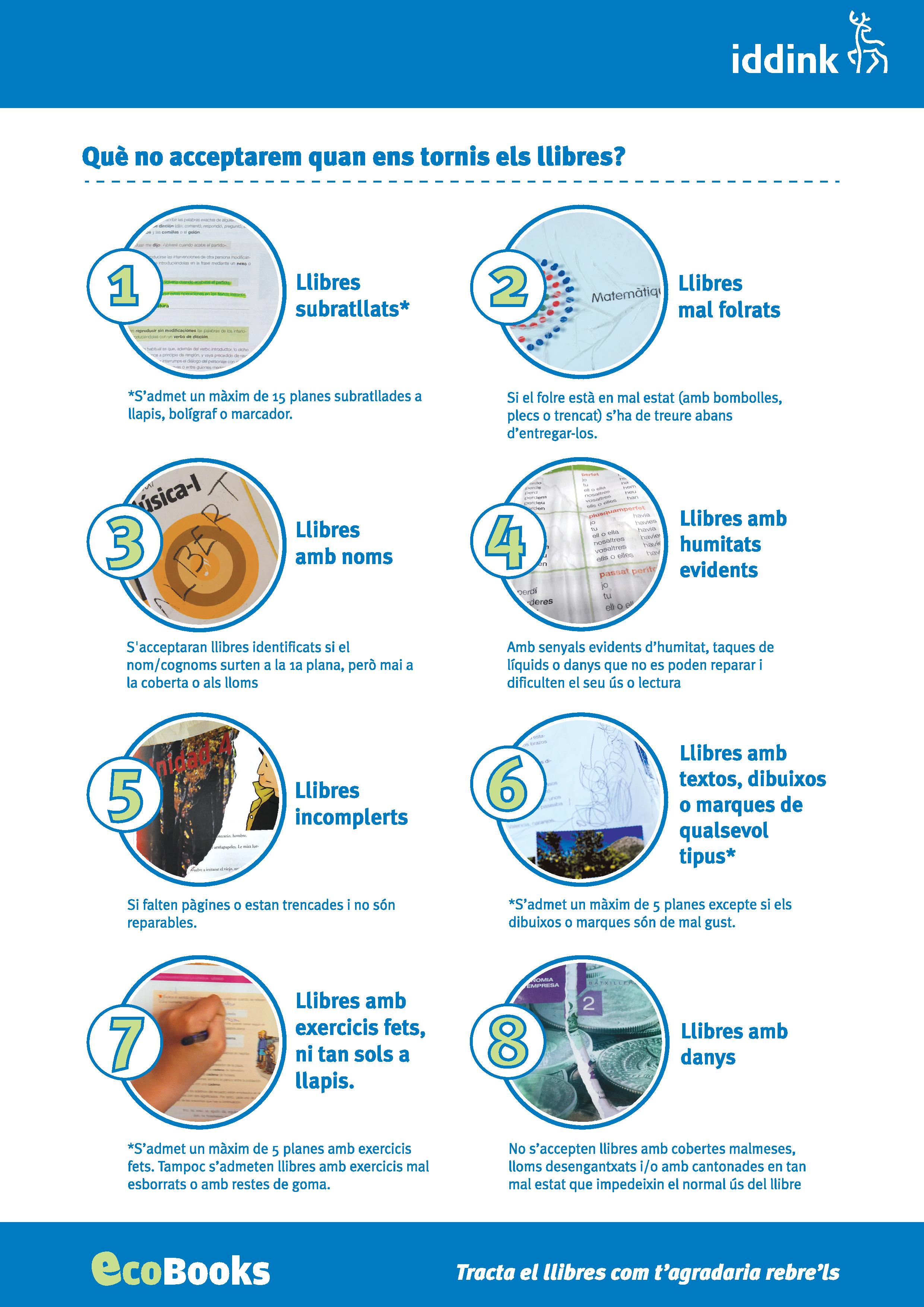 Els ecoBooks són llibres reutilitzables que poden ser utilitzats per altres alumnes en successius cursos escolars. Els centres d'ensenyament amb projectes de reutilització determinen quins dels llibres de la llista poden ser ecoBooks.
